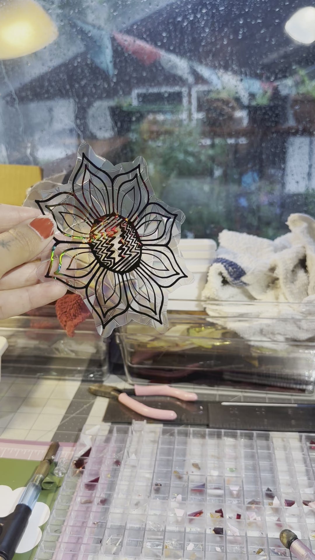 Handmade GD rainbow maker window cling. Can be customized with the color of vinyl that is used as the βoutlineβ. Shown here in holographic black. 5.5β
